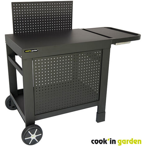 Cook'in Garden Fidgi Servierwagen - Mit Arbeitsplatte Für Fidgi 3 & 4 Grills - Schwarz/Edelstahl